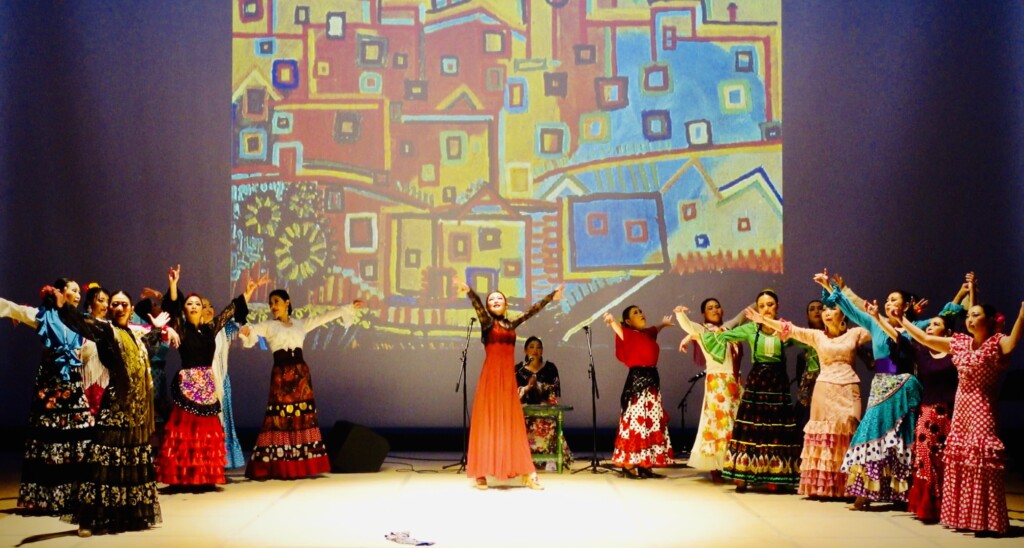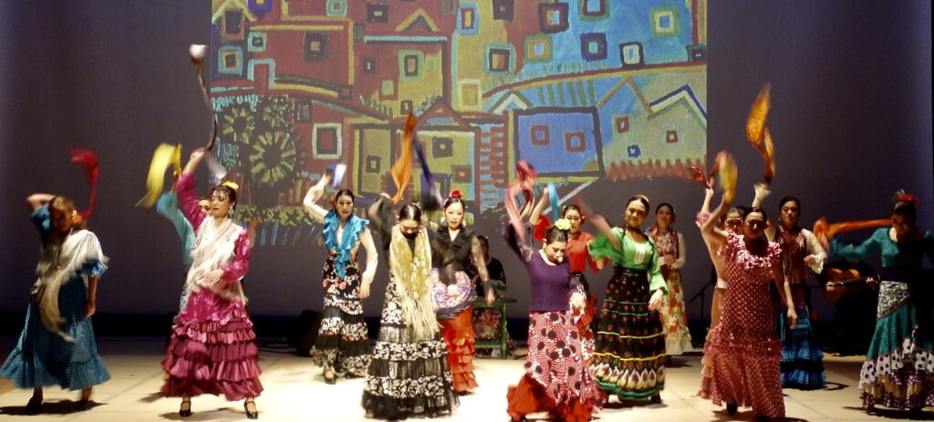 Filippa Giordanoが歌うCarmenの名曲「Habanera」と共に演者が登場。背景のピカソの絵画「Houses」が暗闇から朝に変わります。Carlos Saura監督の映画Carmenの「La Tabacalera」を皆で歌い、スカーフを放り投げてからの初級クラス一年間の成果を発揮、全員違う振り付けのためエネルギーに満ち溢れます。